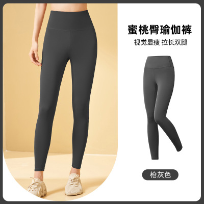 新款高弹蜜桃臀健身裤女高腰提臀超轻显瘦裸感速干跑步运动瑜伽裤 XXL 枪灰色