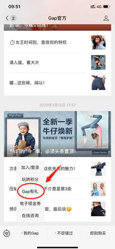 领取图示(点击Gap有礼后需先注册手机号)
