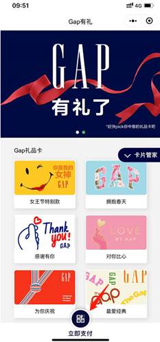 √ Gap礼品卡为电子卡。