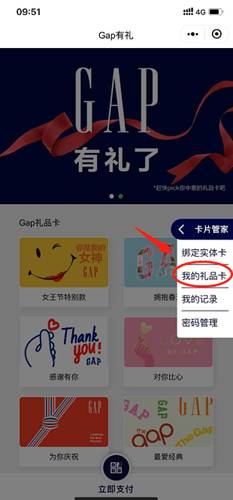 注意:“Gap有礼”中注册的手机号必须与购买礼品卡填写的手机号一致,否则无法收到电子礼品卡。