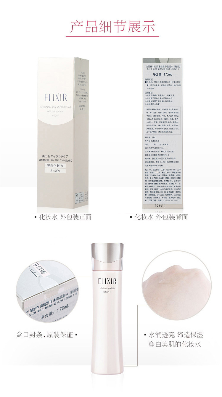 怡丽丝尔 纯肌净白柔滑晶润水清爽型170ml